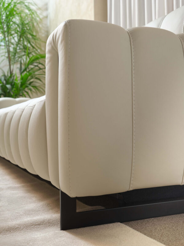 Descobreix el sofà Genesis de Franco Ferri, un model de la col·lecció Relax que envolta amb un confort excepcional i un disseny contemporani inspirat en el luxe del moble italià. Genesis destaca pel seu cosit contrastat rítmic i els detalls elegants en metall, aportant un estil modern i distingit al teu saló.