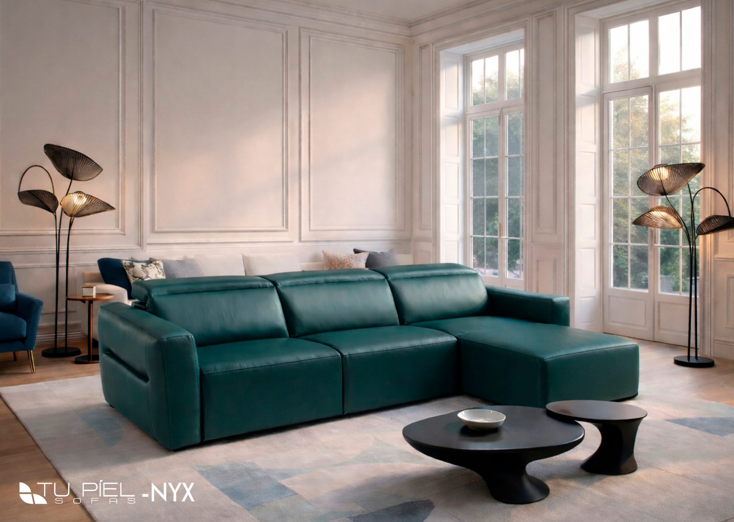 El sofà Relax Nyx s’adapta a estils contemporanis, sofisticats i minimalistes. Pots escollir entre models lineals o amb chaise longue, en formes en L o rectes. Els acabats en pell d’alta qualitat i les potes metal·litzades li donen un toc modern i elegant, perfecte per a salons principals, zones de lectura o espais familiars.
